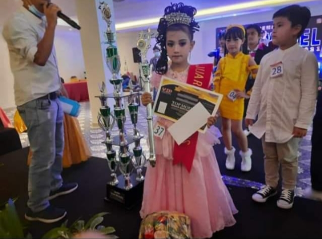 BANDAR LAMPUNG, PL— Siapa yang menyangka, Gadis Manis nan belia peraih gelar Top Model ternyata adik kandung selebgram sekaligus foto model Lola Jessica. Namanya Helwa Raquelizia Mumtaz. Pada 27 Juni 2021 lalu, gadis kecil nan cantik itu meraih juara Top Model di Yunna Hotel. Dari ajang tersebut, Wawa akan mengikuti ajang modeling tingkat nasional di Jakarta pada 11 Juli mendatang, Senin (5/7).