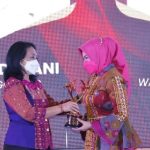 Bupati Tanggamus Hj. Dewi Handajani, usai pemberian penghargaan mengucapkan terima kasih kepada Kementerian Pemberdayaan Perempuan dan Perlindungan Anak, atas penghargaan yang diberikan kepada Kabupaten Tanggamus.