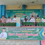 TANGGAMUS, PL– Bupati Tanggamus Hj. Dewi handajani SE. MM, Menghadiri Apel santri dalam rangka memperingati Hari Santri Nasional 2022 PCNU Kabupaten Tanggamus di lapangan Margoyoso Kecamatan Sumberrejo Sabtu (22/10/2022).