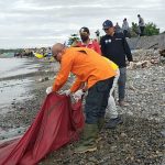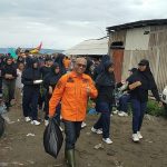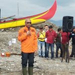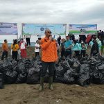 Puluhan orang yang hadir dalam acara tersebut, membawa kantong – kantong sampah seusai memunguti sampah sepanjang jalur penahan ombak sepanjang 600 meter arah timur pinggir pantai Kapuran kelurahan Pasar Madang.