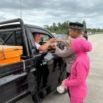 LAMPUNG SELATAN, PL– Hari ke-5 puasa di Bulan Suci Ramadhan Polsek penengahan bersama Bhayangkari Polsek penengahan bagikan puluhan takjil gratis di Exit Tol Bakauheni Utara, Lampung Selatan, Senin (27/03/2023) sekira pukul 16.30 Wib.