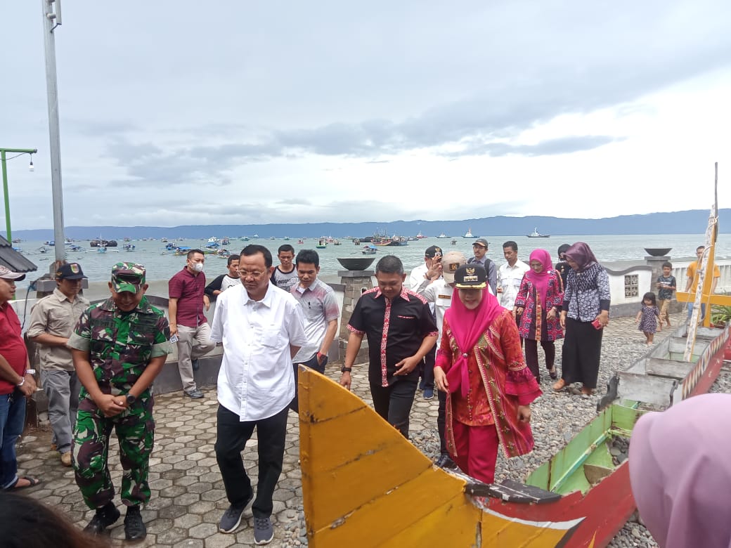Hj Dewi Handajani S.E, M.M Bupati dan Am Syafe’i Wakil Bupati Tanggamus bersama Heri Agus Setiawan S.Sos Ketua DPRD Tanggamus menyambut kunjungan kerja DPR RI dan Kementerian Kelautan dan Perikanan (KKP) dalam rangka pendampingan perlindungan dan pemberdayaan nelayan (Bakti Nelayan) di muara indah Kotaagung, Sabtu (15/04/23).