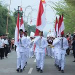 Iring-iringan para peserta karnaval yang menyusuri jalan di Komplek Perkantoran Pemda Kabupaten Pringsewu ini mendapat sambutan warga yang tampak antusias menyaksikan.