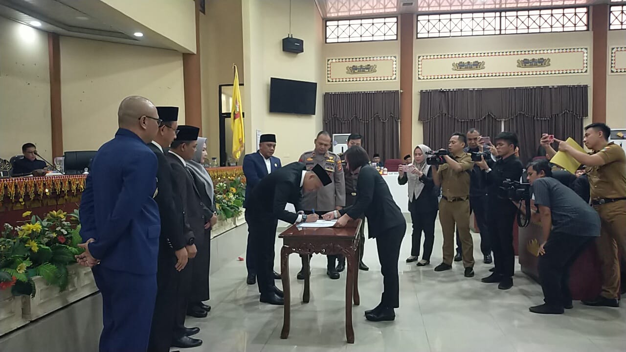 TANGGAMUS– DPRD Kabupaten Tanggamus menggelar rapat paripurna dalam rangka pengucapan sumpah janji Pergantian Antar Waktu (PAW) masa jabatan 2018-2024 di ruang sidang setempat pada Senin, 3 Juli 2023