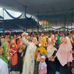 TANGGAMUS, PL– Bupati Tanggamus Dewi Handajani menghadiri pengajian akbar dalam rangka menyambut tahun baru Hijriah di lapangan Pekon Landbaw Kecamatan Gisting, Senin (17/7/2023).