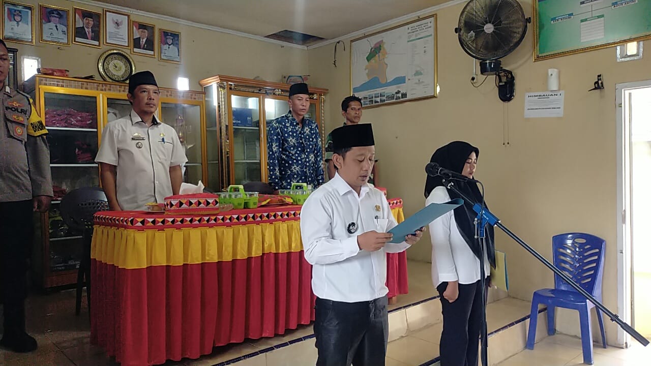 TANGGAMUS, PL– Kepala Pekon Kota Batu melantik Kaur, Kasi dan dua Kadus Pekon bertempat di balai pekon Kota Batu, Rabu 2/8/23.