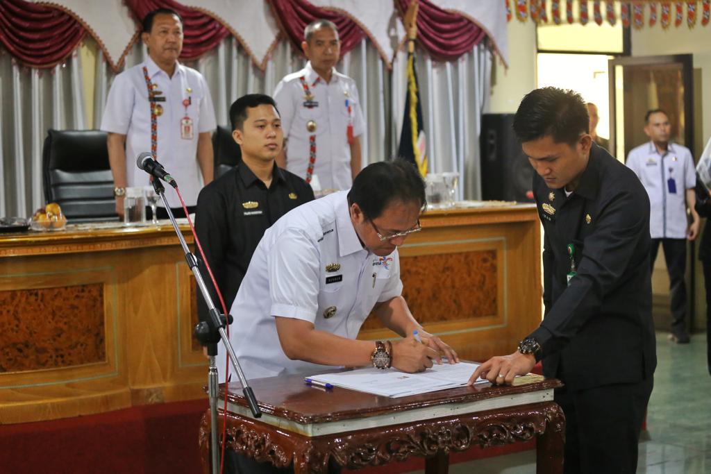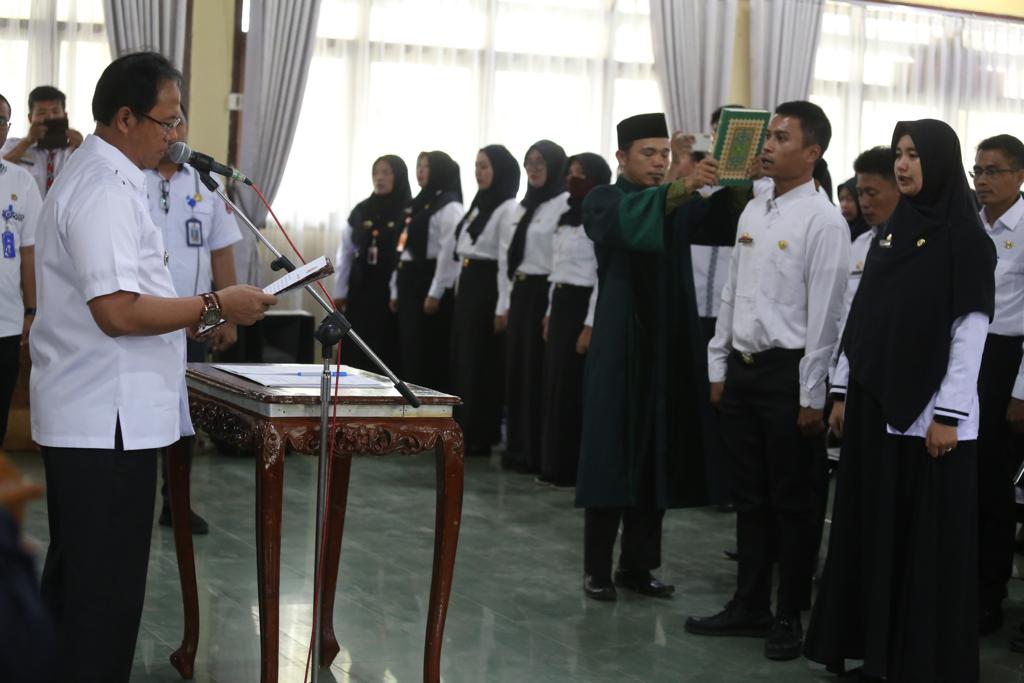 Pengambilan sumpah jabatan ini turut disaksikan Pj Sekkab Drs. Adi Utama, asisten bidang administrasi umum Drs. Ismet Inoni, dan Kepala Badan Kepegawaian serta Pengembangan Sumber Daya Manusia (BPKPSM) Drs. Ahmad Hikami.