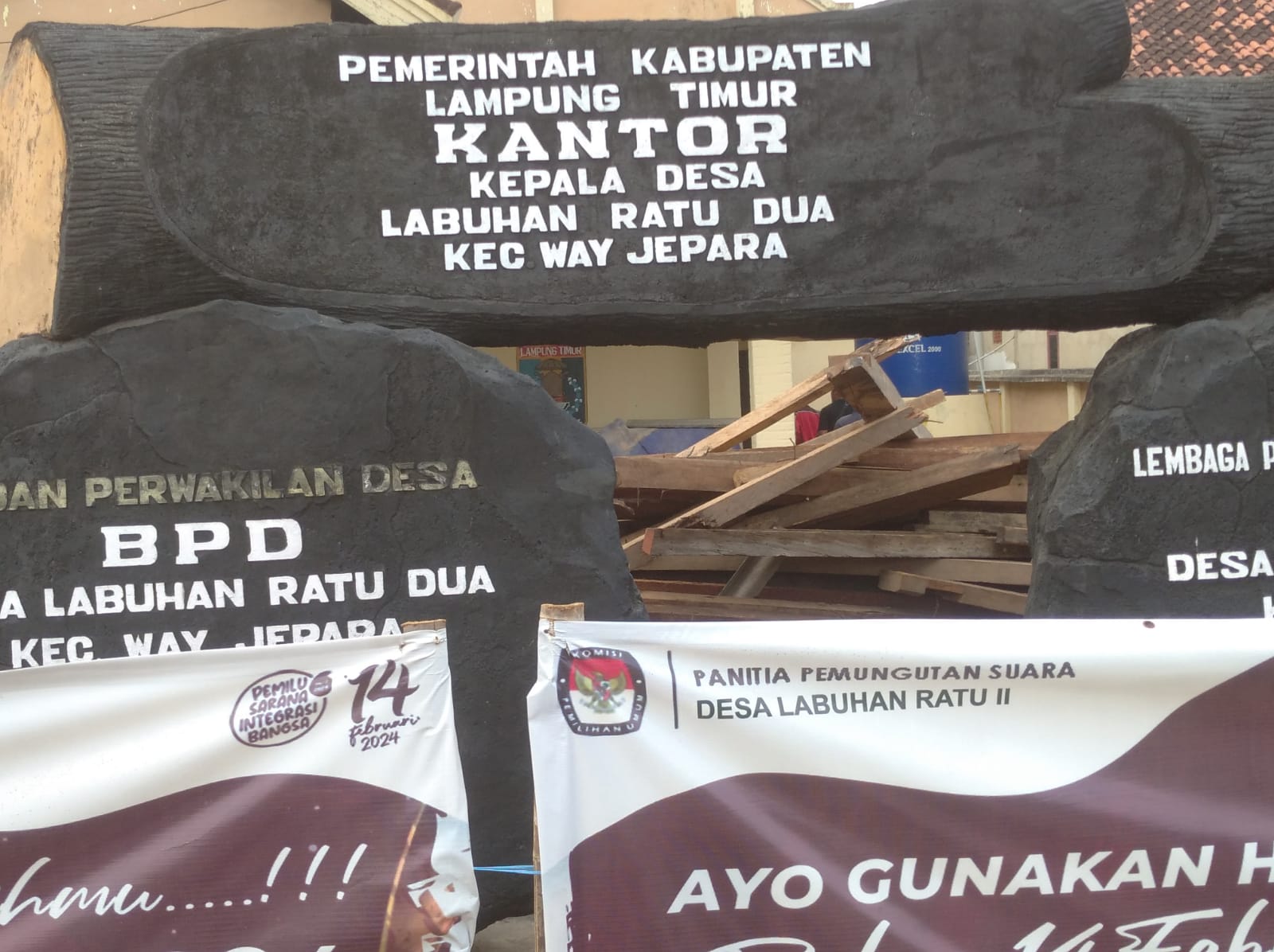 LAMPUNG TIMUR, Pantaulampung.com – Proyek perbaikan Balai Desa Labuhan Ratu Dua, Kecamatan Way Jepara, Lampung Timur dipertanyakan warga setempat. Pengerjaan sudah dimulai sekitar sebulan lalu, tetapi hingga Selasa (29/8/2023) belum juga ada papan nama proyek tersebut.