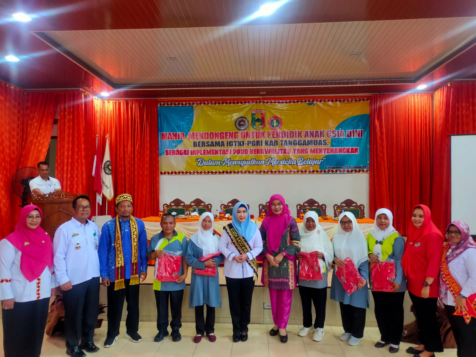 Dalam acara bertajuk Mahir Mendongeng untuk Pendidikan Anak Usia Dini (PAUD) bersama guru IGTKI-PGRI Kab. Tanggamus itu, turut hadir Kadis Pendidikan Yadi Mulyadi, Ketua DWP Tanggamus Nuraini Hamid Lubis, Camat Gisting Purwanti, Pendongeng tingkat Nasional dari Jogja Bambang Bimo, Ketua PGRI, Ketua dan Mitra Organisasi Paud, SPLP dan para guru TK dan Paud se-Tanggamus.