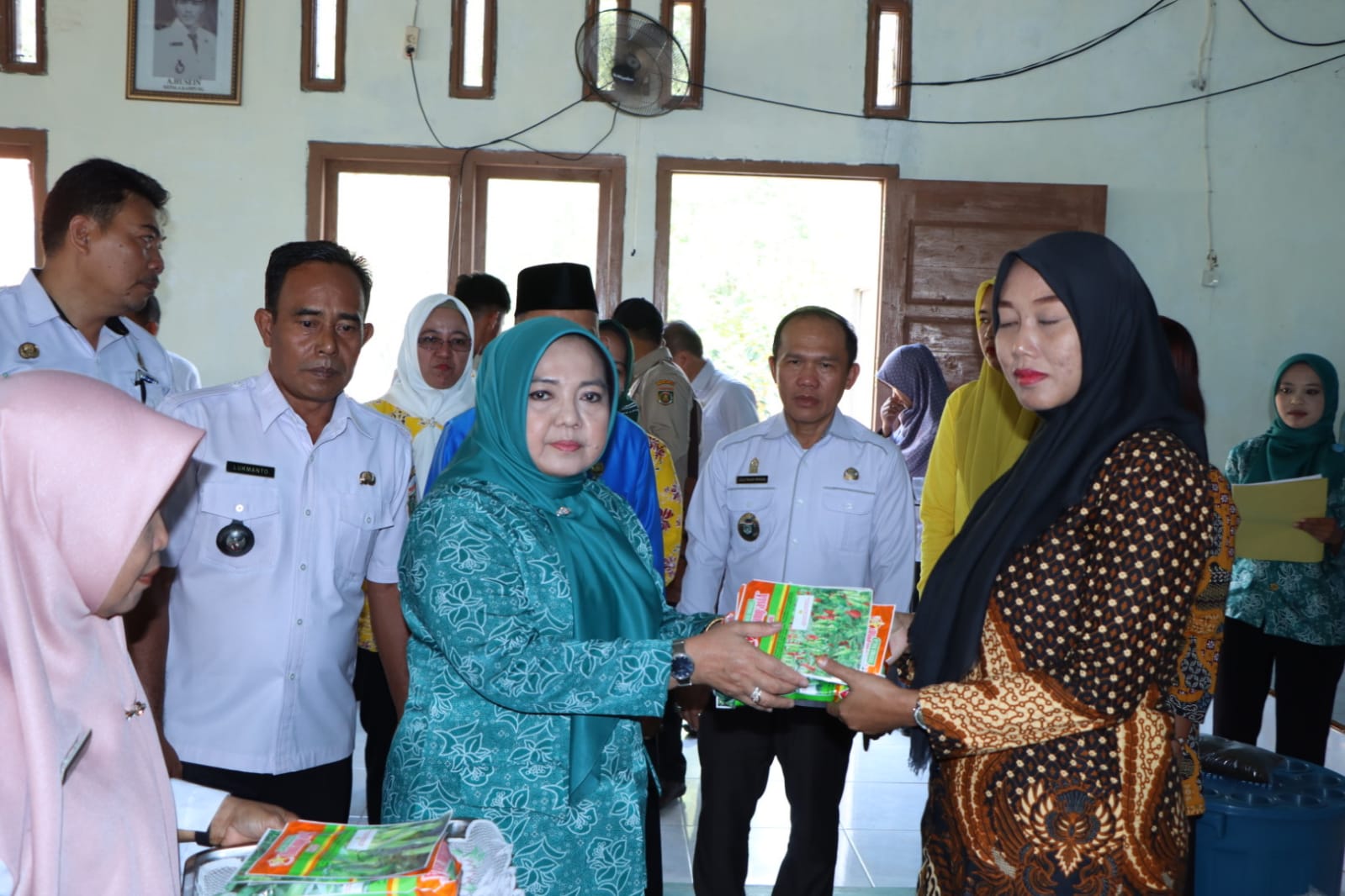 Dalam kesempatan tersebut Ketua TP PKK Kabupaten Lampung Tengah Mardiana Musa Ahmad menyerahkan bantuan diantaranya ember budidamber, bibit ikan lele, pakan ikan dan karpet kolam ikan.
