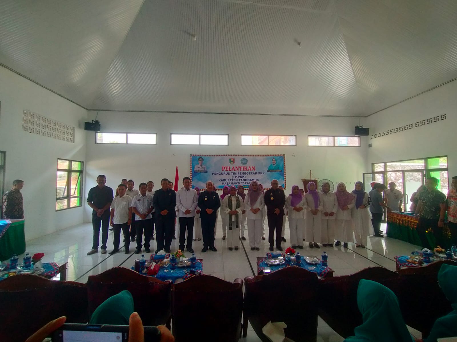 Hadir dalam pelantikan kepengurusan tersebut Pj. Bupati Tanggamus selaku Pembina Tim Penggerak PKK dan Dekranasda Kab. Tanggamus, Sekretaris Daerah, Kepala Perangkat Daerah dilingkungan Pemerintah Kabupaten Tanggamus, Kepala Kantor Kementerian Agama Tanggamus, Para Pengurus Tim Penggerak PKK dan Pengurus Dekranasda Kabupaten Tanggamus yang baru saja dilantik.