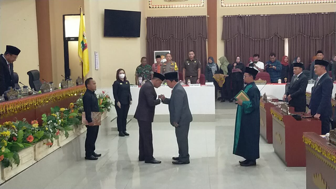 PANTAU LAMPUNG– Pj Bupati Tanggamus Ir. Mulyadi Irsan hadir dalam paripurna Pergantian Antar Waktu (PAW) anggota DPRD setempat masa bakti 2019-2024.