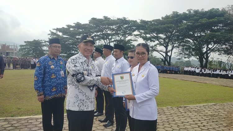 Ditempat yang sama juga sekaligus digelar pengambilan sumpah pegawai pemerintah dengan perjanjian kerja sebanyak 749 orang dari formasi tahun 2023 yang terdiri dari tenaga teknis 46 orang tenaga kesehatan 44 orang dan tenaga guru sebanyak 659 orang.