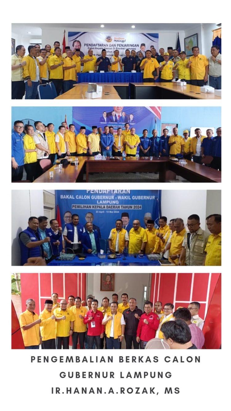 Sementara Bakal calon gubernur Lampung Hanan A.Rozak mengatakan saat ini dirinya bersama Jajaran Pengurus DPD Partai Golkar Provinsi Lampung dan Tim “Sahabat Hanan” menyerahkan berkas administrasi sesuai dengan persyaratan yang dilakukan tim penjaringan dari masing-masing Partai Politik.