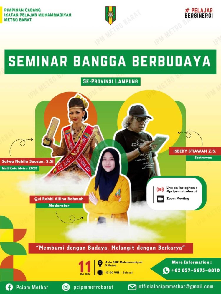 PANTAU LAMPUNG – Pimpinan Cabang Ikatan Pelajar Muhammadiyah Metro menggelar seminar budaya se-Provinsi Lampung di SMK Muhammadiyah 3 Metro, Sabtu 12 Mei 2024.