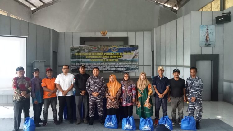 PANTAU LAMPUNG – TNI Angkatan Laut (TNI AL) memberikan pelatihan ketahanan pangan mengenai budidaya rumput laut, Udang Vaname menggunakan Bioflok, jagung dan padi dibawah binaan Pangkalan TNI Angkatan Laut (Lanal) Lampung dari tanggal 19 hingga 20 Juni 2024.