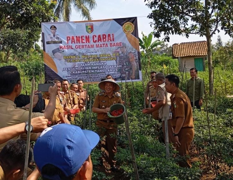 PANTAU LAMPUNG – Penjabat (Pj) Bupati Tanggamus Ir. Mulyadi Irsan , MT., menghadiri panen cabai merah Gerakan Penanaman Serentak Bawang dan Cabai (GERTAK MATA BABE) dalam rangka Pengendalian Inflasi Daerah di Kabupaten Tanggamus, di Pertanian Milenial Gisting Pekon Gisting Bawah Kecamatan Gisting, Selasa, 25 Juni 2024.