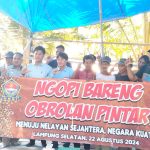 PANTAU LAMPUNG– Dewan Pimpinan Cabang Himpunan Nelayan Seluruh Indonesia (DPC HNSI) Lampung Selatan, bekerja sama dengan PT Lampung Energi Berjaya (PT LEB), mengadakan acara Ngopi Bareng Ngobrol Pintar bertema “Menuju Nelayan Sejahtera, Negara Kuat”. Kegiatan ini berlangsung di Pantai Wartawan, Desa Way Muli, Kecamatan Rajabasa, Lampung Selatan.