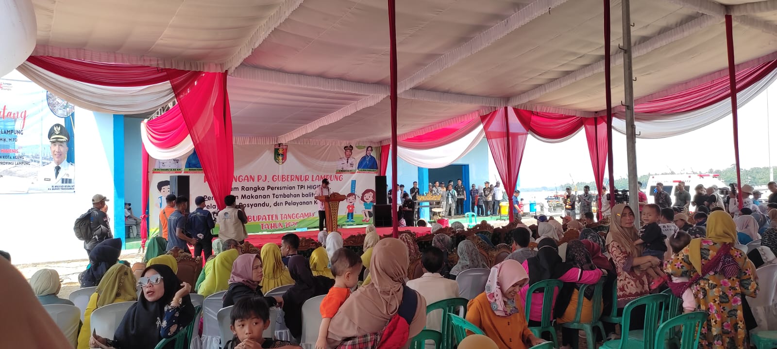 PANTAU LAMPUNG– Penjabat (Pj.) Gubernur Lampung, Dr. Drs. Samsudin, S.H., M.H., M.Pd., melakukan kunjungan kerja di Kabupaten Tanggamus dalam rangka meresmikan Tempat Pelelangan Ikan (TPI) Higienis di Kota Agung, Jumat pagi. Kegiatan ini juga mencakup pemberian makanan tambahan untuk balita stunting, pelayanan posyandu, serta pelayanan kesehatan bagi masyarakat setempat.