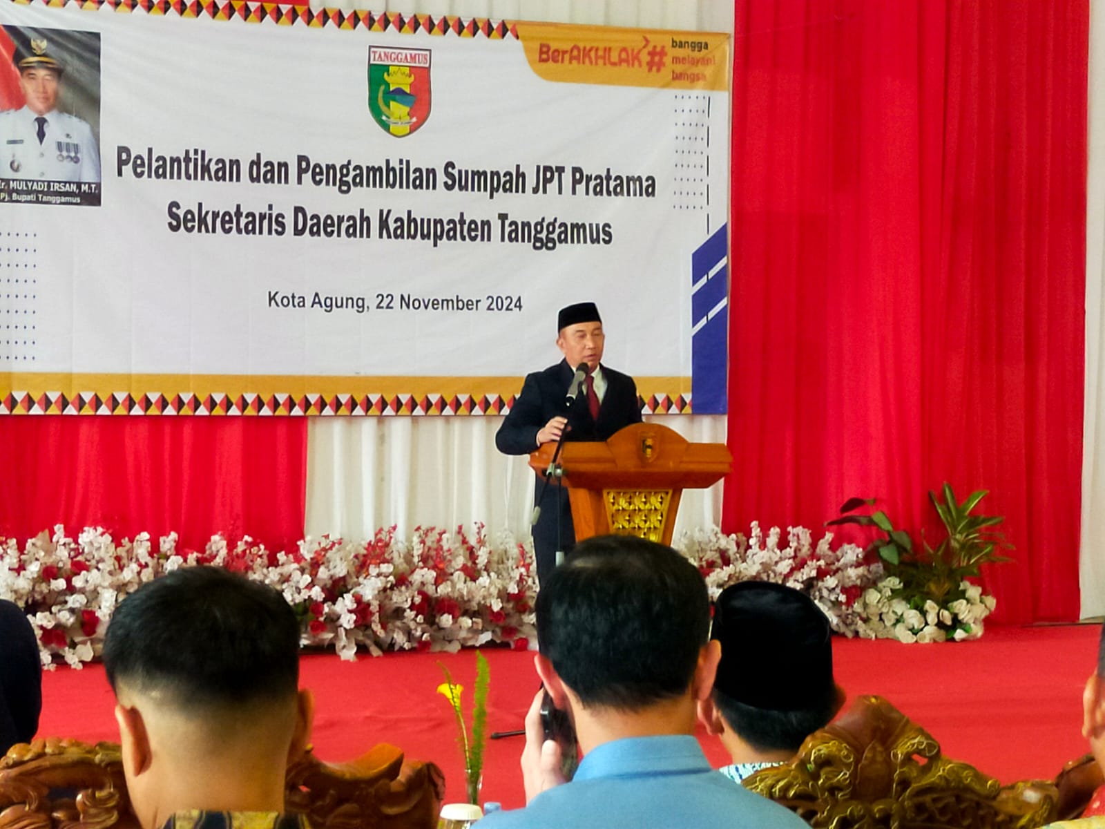 PANTAU LAMPUNG– Pada hari Jumat, 22 November 2024, bertempat di Aula Islamic Center Kota Agung, PJ Bupati Tanggamus, Mulyadi Irsan, secara resmi melantik dan mengambil sumpah jabatan Ir. Suaidi, MM., sebagai Sekretaris Daerah (Sekda) Kabupaten Tanggamus. Pelantikan ini dihadiri oleh sejumlah pejabat penting, di antaranya para asisten, kepala Organisasi Perangkat Daerah (OPD), camat se-Kabupaten Tanggamus, serta Forkopimda dan Ketua TP PKK Kabupaten Tanggamus.