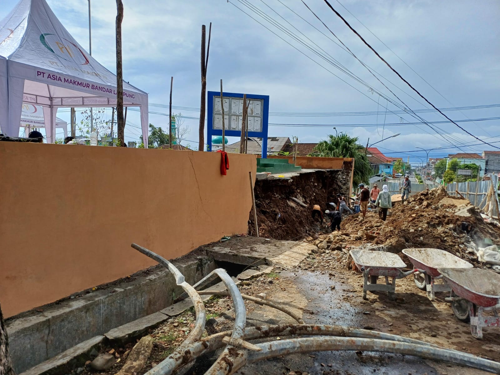 Sekretaris Dinas Pekerjaan Umum dan Perumahan Rakyat (PUPR) Tanggamus, Ari Yudha, segera merespons dengan mengecek langsung lokasi kejadian. Tim dari Dinas PUPR Tanggamus pun turun ke lokasi untuk membersihkan material reruntuhan dan memulai perbaikan dengan menggunakan alat berat.