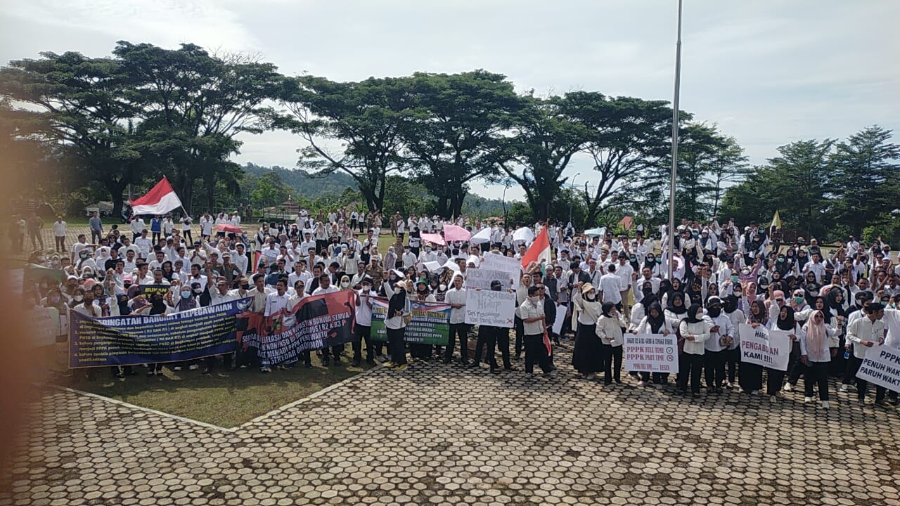 “Kami memohon kepada para pejabat untuk mengabulkan permintaan kami. Satu-satunya yang kami inginkan adalah status sebagai PPPK penuh waktu. Jangan setengah-setengah,” kata Sarjiyo, disambut sorak-sorai para honorer.