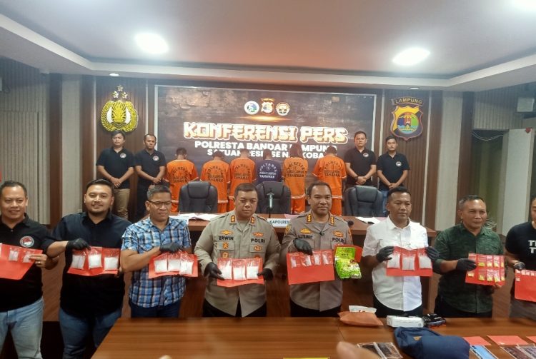 “Dari beberapa kegiatan yang telah dilakukan, Satresnarkoba bersinergi dengan Polsek jajaran berhasil mengungkap peredaran narkoba barang bukti 2,2 Kg sabu dan 100 butir pil ekstasi,” ujar Kapolresta Bandar Lampung, Kombes Pol Alfret Jacob Tilukay didampingi wakapolresta AKBP Erwin dan Kasat Narkoba Kompol I Made Indra Wijaya saat memimpin konferensi pers di Mapolresta setempat, Jumat, 31 Januari 2025.