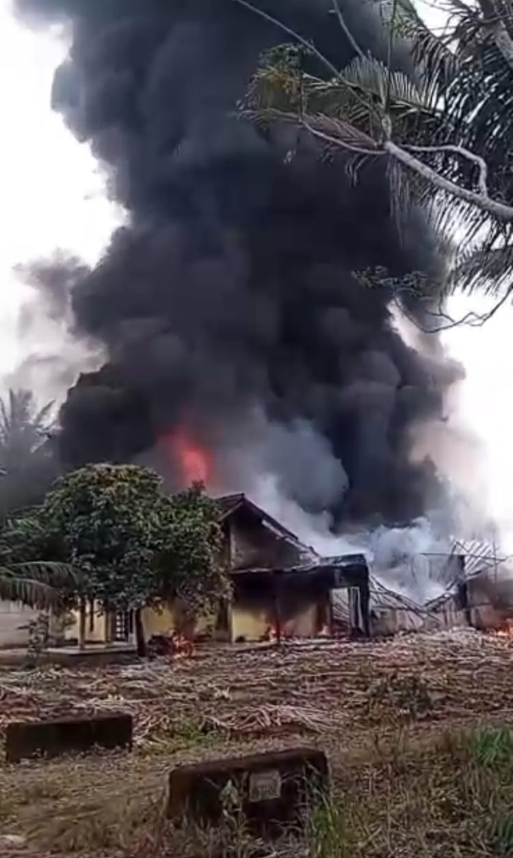 Kobaran api dengan cepat melahap bangunan yang diduga sebagai tempat penimbunan BBM ilegal tersebut.