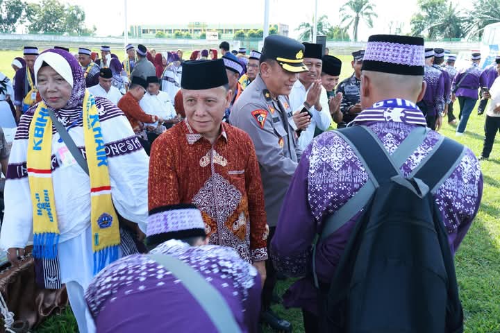 “Ibadah haji adalah panggilan suci dari Allah SWT. Kami mendoakan semoga seluruh jemaah menunaikan ibadah dengan lancar dan kembali ke tanah air dalam keadaan sehat, serta menjadi haji yang mabrur,” ujar Mankodri membacakan pesan tertulis dari Bupati.