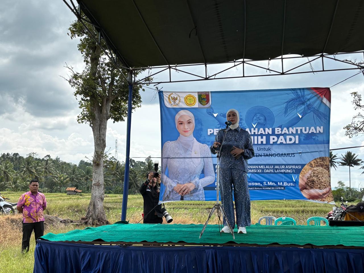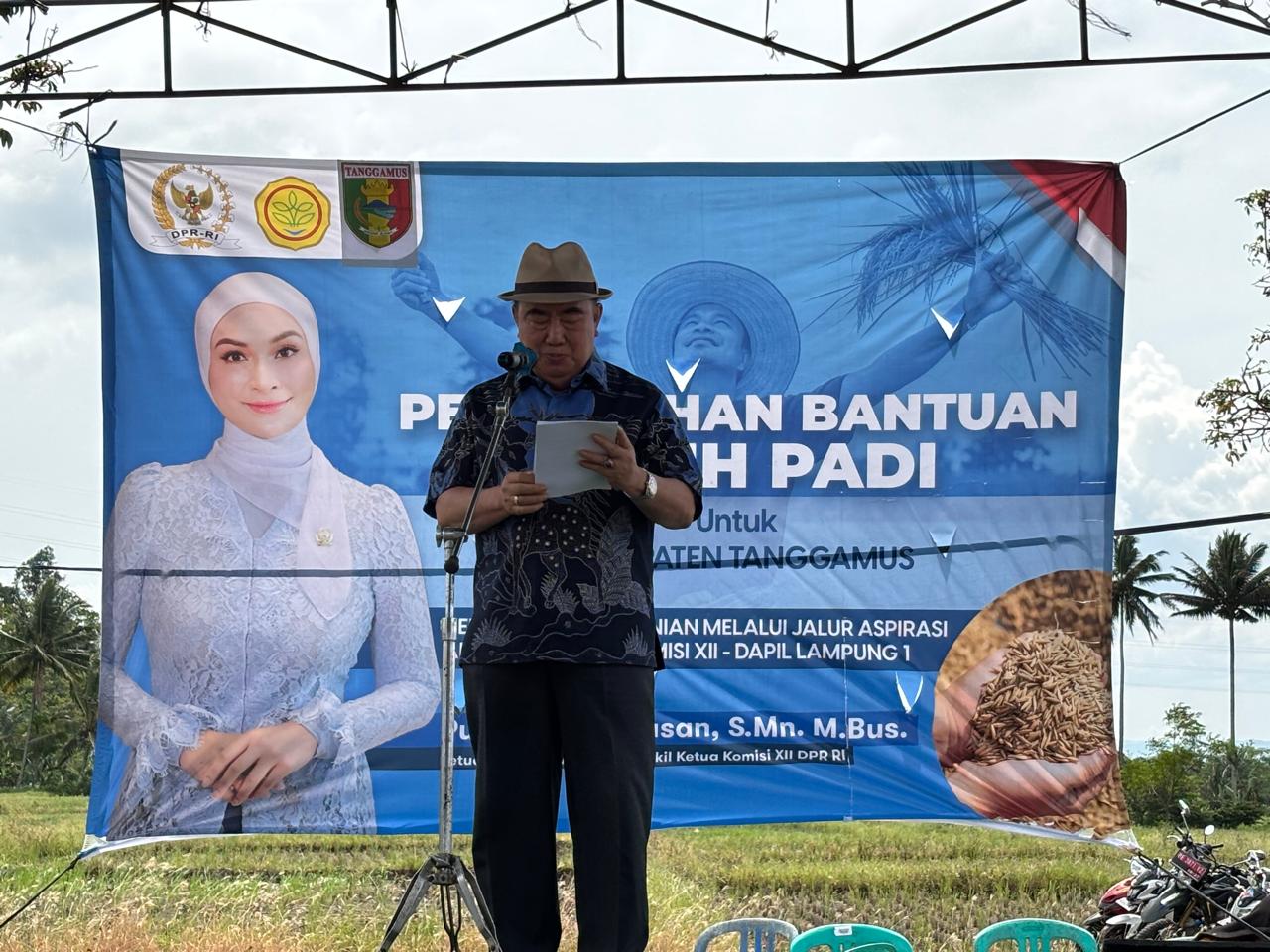 PANTAU LAMPUNG — Sebagai bentuk komitmen nyata terhadap ketahanan pangan nasional, Wakil Ketua Komisi XII DPR RI, Putri Zulkifli Hasan, menyerahkan secara simbolis bantuan bibit padi kepada ratusan petani di Kecamatan Gisting, Kabupaten Tanggamus, Sabtu (7/6/2025).