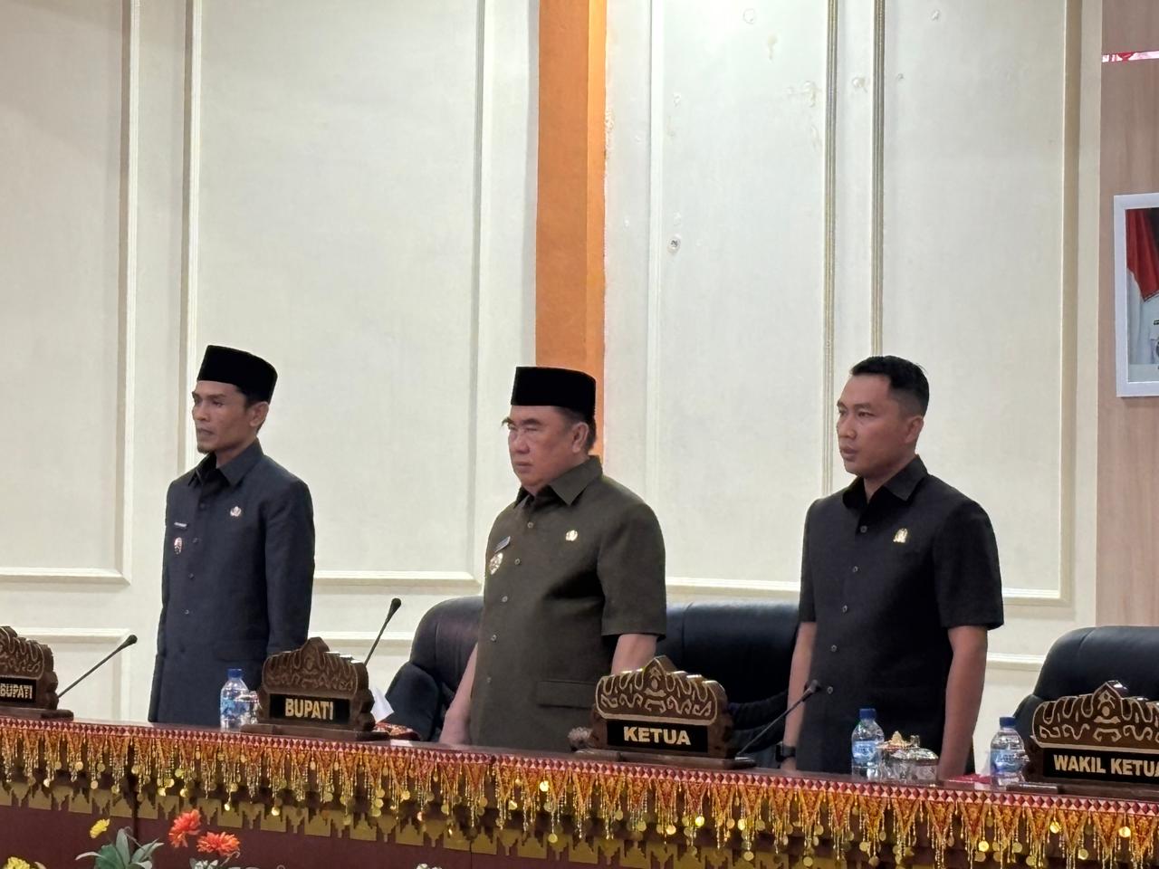 Rapat yang digelar di ruang sidang utama DPRD ini dipimpin langsung Ketua DPRD Tanggamus, Agung Setyo Utomo, dan dihadiri 33 anggota DPRD. Turut hadir Bupati Tanggamus Drs. Hi. Moh. Saleh Asnawi, MA., MH., didampingi Wakil Bupati Agus Suranto, Sekda Suadi, jajaran OPD, camat, serta Forkopimda dan tokoh masyarakat.