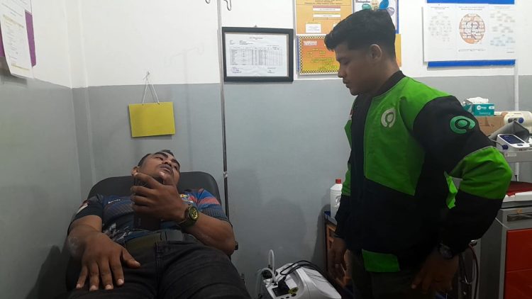 “Saya luka-luka karena jatuh dari kap mobil. Saya minta tolong di jalan dan akhirnya dibawa ke Puskesmas,” katanya.