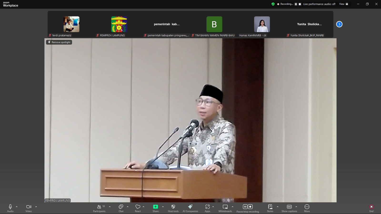 Penghargaan ini diberikan dalam rangkaian kegiatan audiensi yang dipimpin oleh Wakil Menteri PAN-RB, Komjen Pol (Purn) Drs. Purwadi Arianto, M.Si, pada Rabu, 24 Juli 2025, bertempat di Gedung Pusiban, Komplek Kantor Gubernur Lampung. Acara dibuka langsung oleh Gubernur Lampung, Rahmat Mirzani Djausal, dan dihadiri oleh perwakilan dari 15 kabupaten/kota se-Provinsi Lampung.