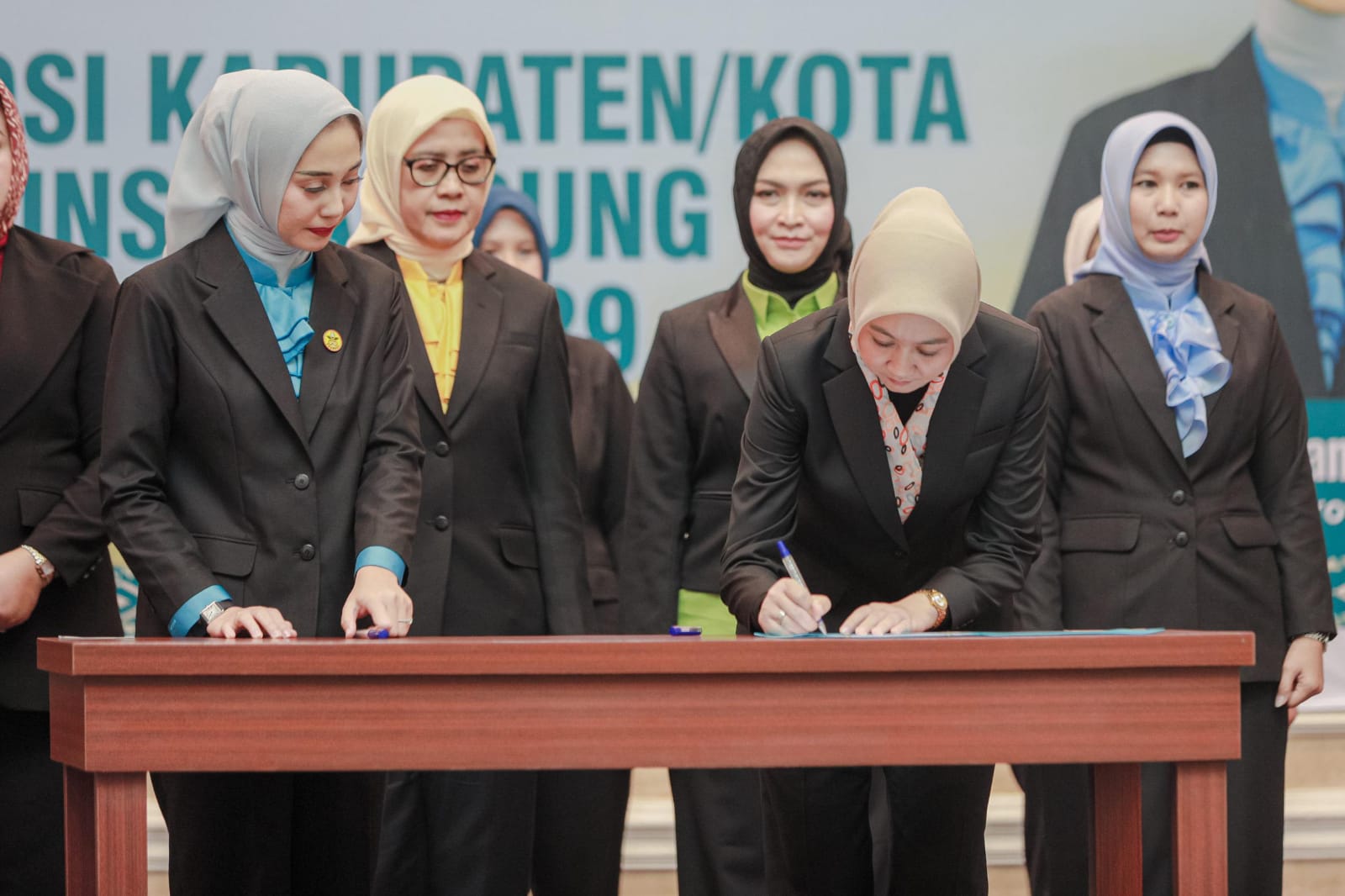 Acara pelantikan ditandai dengan serangkaian kegiatan simbolis. Pengurus dari 15 kabupaten/kota menandatangani berita acara pelantikan, dilakukan pemasangan pin secara simbolis oleh Ketua Perwosi Provinsi Lampung, serta penyerahan bendera organisasi kepada perwakilan pengurus. Tidak ketinggalan, tim senam kreasi Perwosi Lampung tampil memukau sebagai representasi persiapan provinsi menghadapi ajang tingkat nasional.