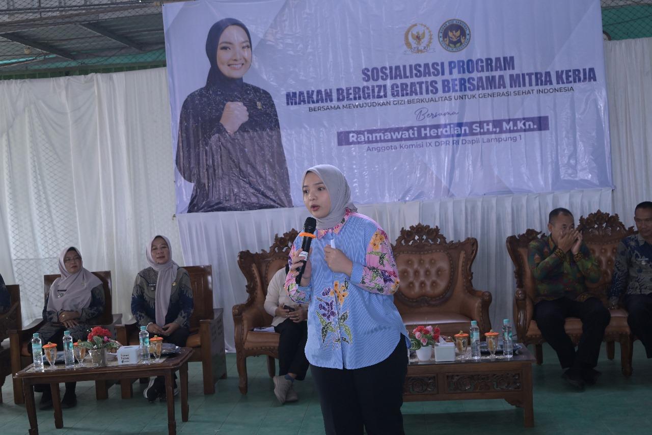 Ia juga menambahkan bahwa program MBG punya dampak besar dalam menurunkan angka gizi buruk dan stunting. “Harapan saya, dari Lampung akan lahir generasi yang sehat, tangguh, dan bisa membanggakan bangsa. MBG adalah langkah awal menuju masa depan yang lebih cerah,” ujar Rahmawati yang disambut tepuk tangan peserta.