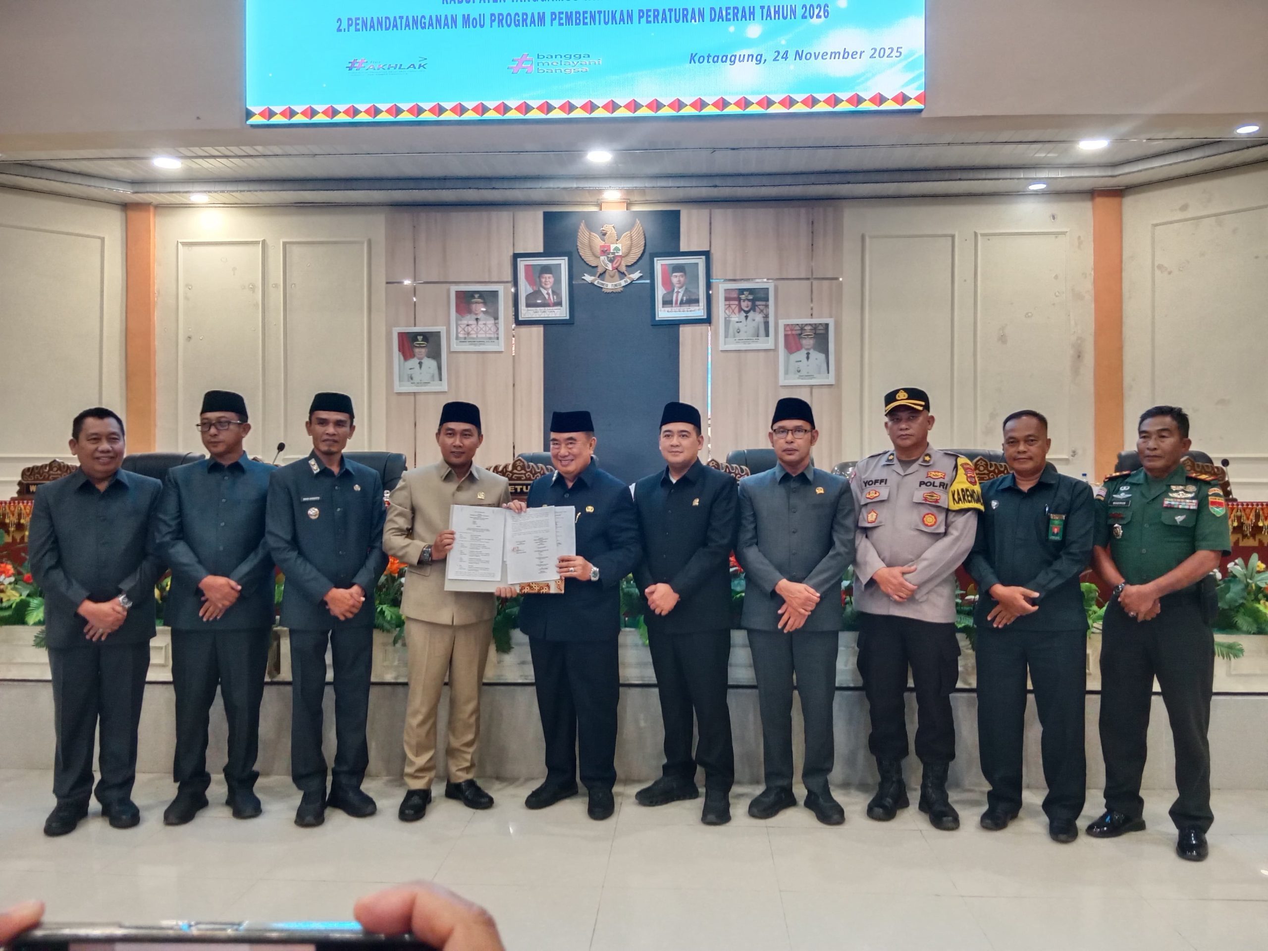 Selain Itu, Rapat Paripurna Juga Menjadi Momentum Penandatanganan Nota Kesepahaman Atau MOU Program Pembentukan Peraturan Daerah Tahun 2026. Terdapat Tujuh Usulan Perda Dari Eksekutif, Termasuk Rencana Umum Penanaman Modal, Rencana Pembangunan Industri Kabupaten, Rencana Tata Ruang Wilayah, Perubahan Peraturan Daerah Tentang Badan Hippun Pemekonan, Dan Pembentukan Pekon Baru.