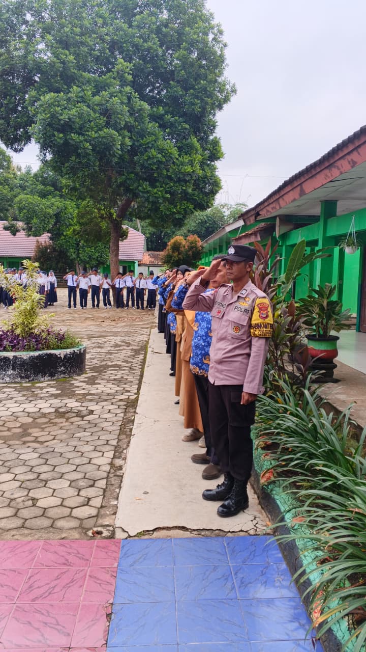 Kegiatan tersebut berlangsung saat upacara bendera di UPTD SMPN 18 Pesawaran, Desa Karangrejo, Kecamatan Negeri Katon, Senin (19/1/2026). Kasubsektor Negeri Katon Ipda Sunardi bertindak sebagai pembina upacara, didampingi Bhabinkamtibmas Bripka Istiono.