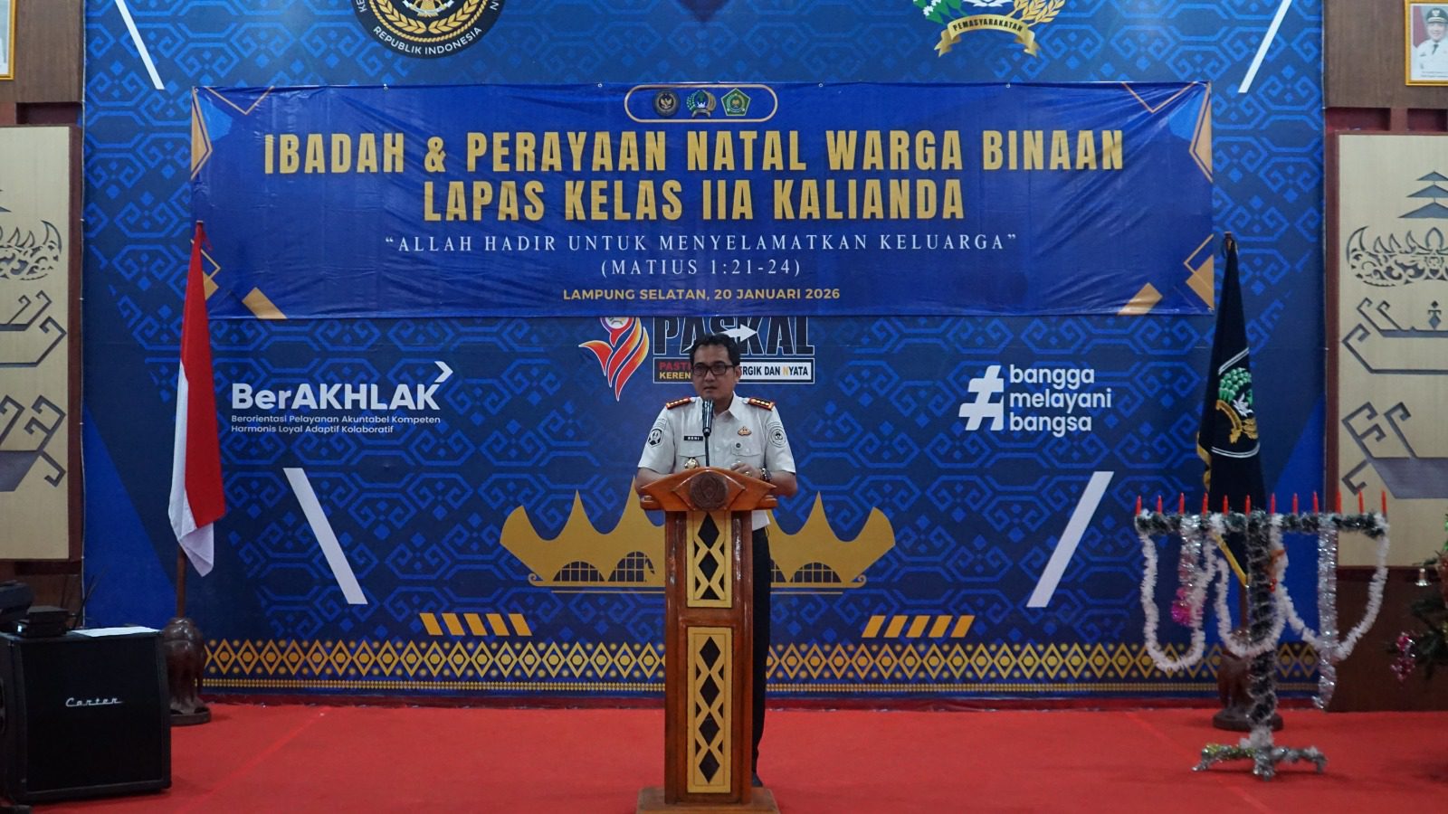 Perayaan Natal dilaksanakan di Aula Lapas Kelas IIA Kalianda pada Selasa, 20 Januari 2026. Kegiatan berlangsung khidmat dan penuh sukacita meskipun para warga binaan tengah menjalani masa pidana.