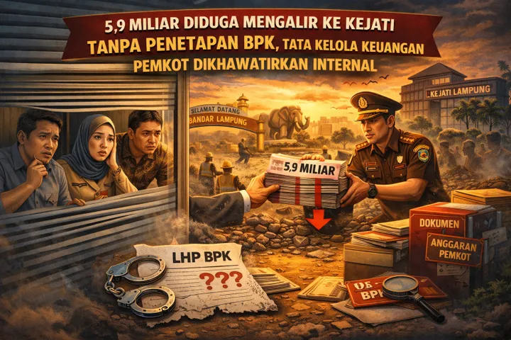 PANTAU LAMPUNG- Dugaan aliran anggaran senilai Rp5,9 miliar dari Pemerintah Kota Bandar Lampung untuk pembangunan gedung Kejaksaan Tinggi (Kejati) Lampung memunculkan kekhawatiran serius di internal pemerintahan daerah. Dana tersebut disebut-sebut telah dicairkan tanpa adanya penetapan kewajiban daerah oleh Badan Pemeriksa Keuangan (BPK), sehingga berpotensi menyalahi tata kelola keuangan negara.