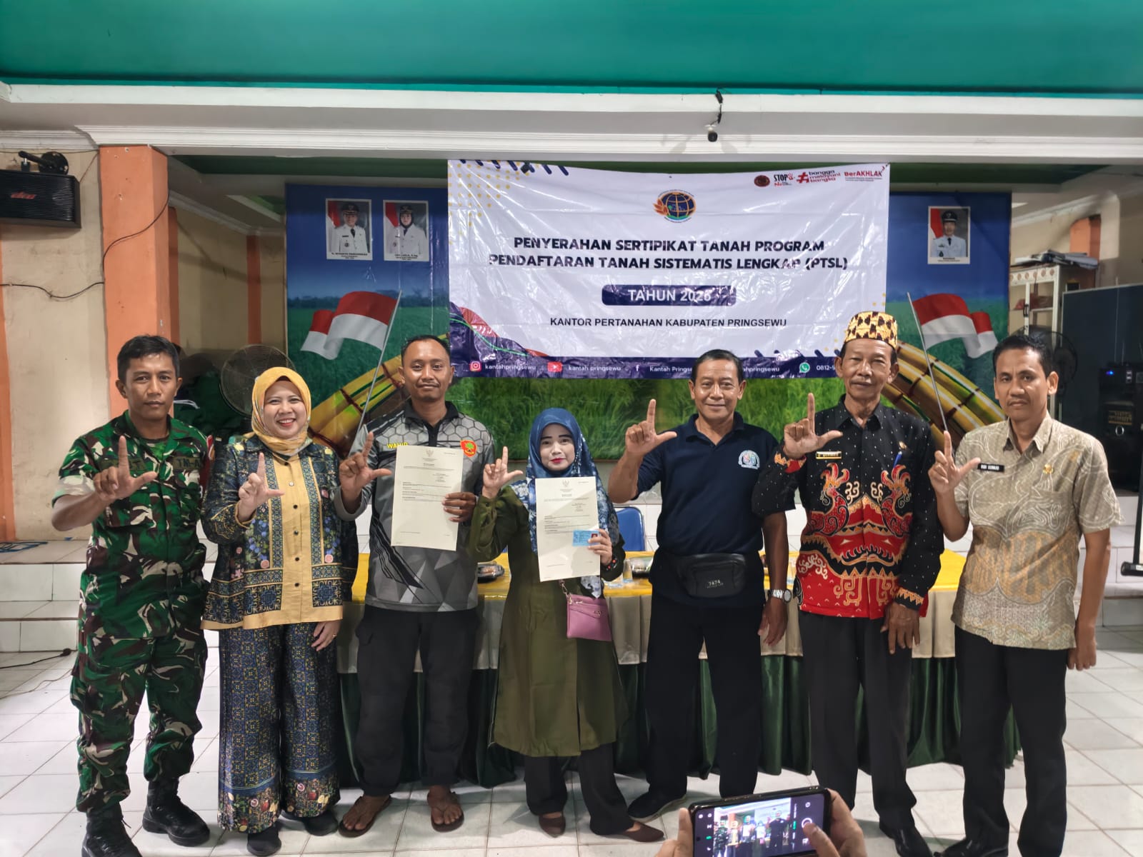 PANTAU LAMPUNG- Kantor Pertanahan Kabupaten Pringsewu membagikan 265 sertipikat tanah Program Pendaftaran Tanah Sistematis Lengkap (PTSL) Tahun Anggaran 2025 di Balai Pekon Gading Rejo, Kecamatan Gading Rejo, Kamis (12/2/2026). Penyerahan sertipikat PTSL ini menjadi bagian dari upaya pemerintah memberikan kepastian hukum hak atas tanah kepada masyarakat.