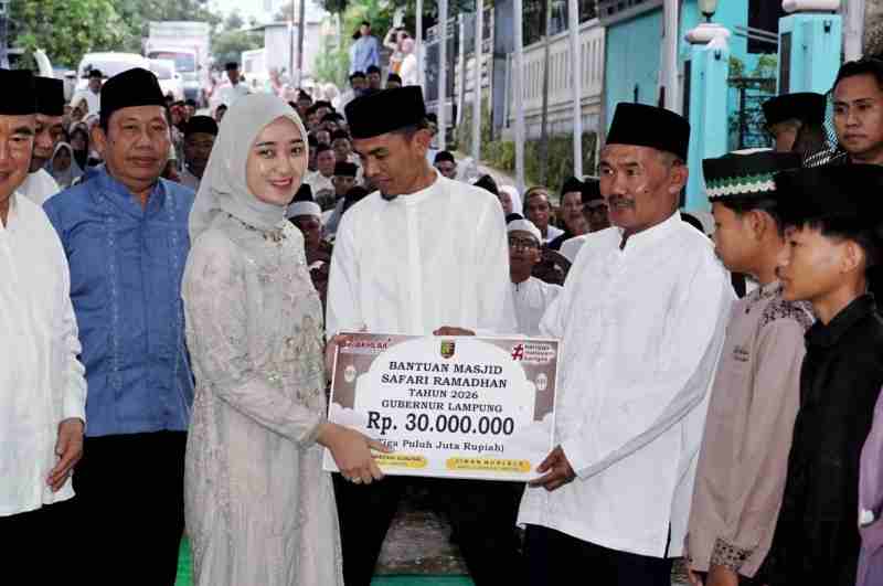 PANTAU LAMPUNG- Wakil Gubernur Lampung Jihan Nurlela menegaskan komitmen Pemerintah Provinsi Lampung dalam mempercepat pembangunan infrastruktur jalan di Kabupaten Tanggamus. Hal ini disampaikannya saat Safari Ramadan 1447 H di Masjid Jami Hidayatul Muttaqien, Gisting, Kamis (26/2/2026).