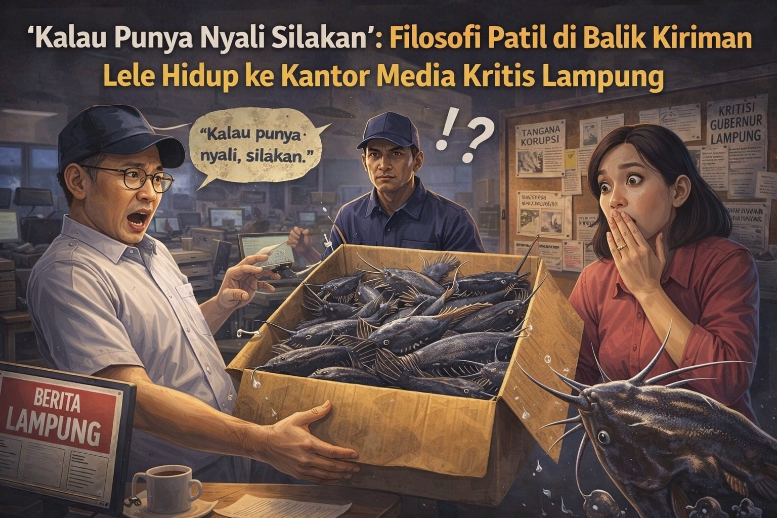 Dari 9 paket ikan Lele hidup dan 6 paket costum anime Jepang itu, menurutnya– tersirat ancaman “Mau Coba Silahkan Kalau Punya Nyali.”
