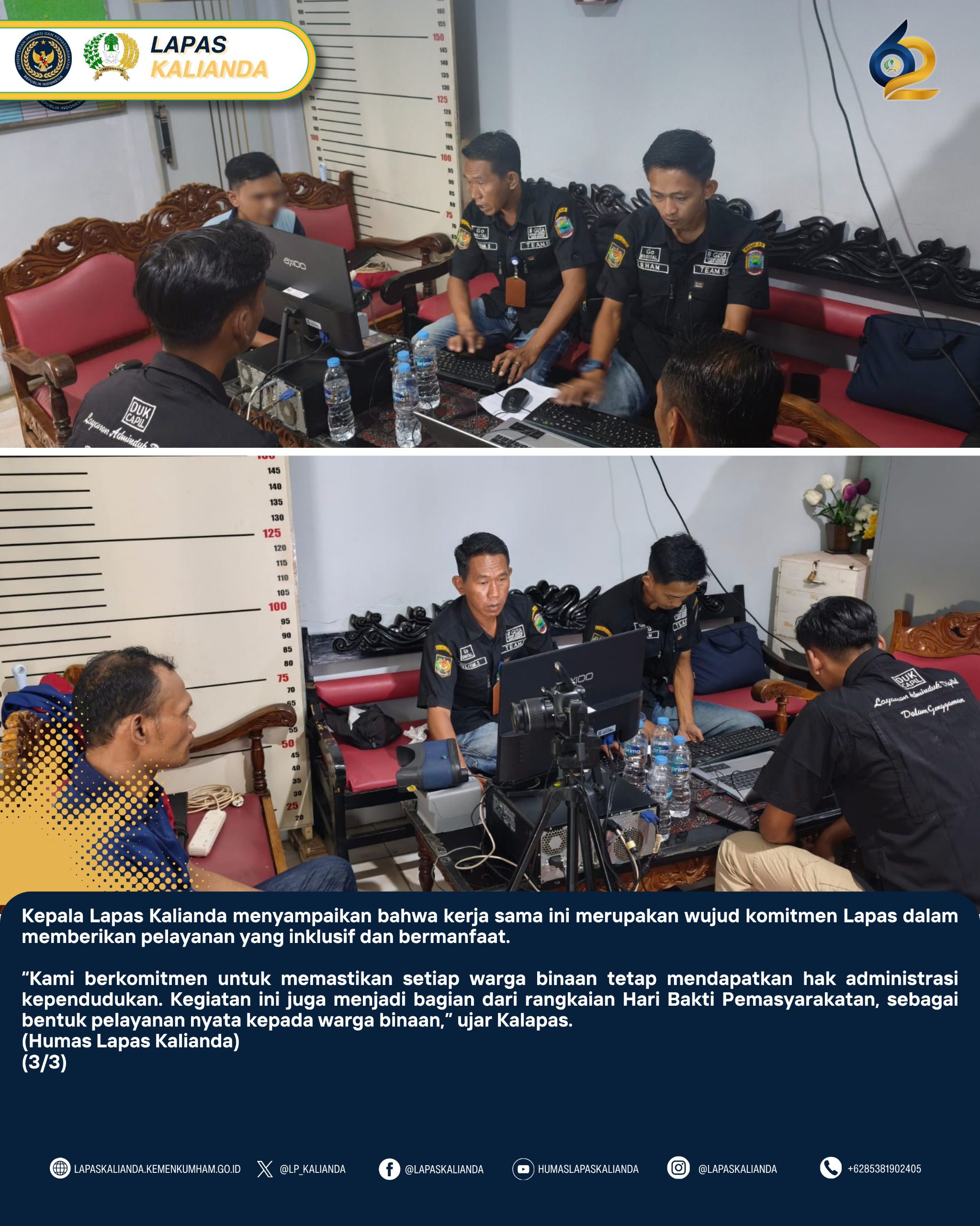 Kegiatan ini merupakan bagian dari peringatan Hari Bakti Pemasyarakatan ke-62 sekaligus bentuk sinergi antarinstansi dalam meningkatkan pelayanan publik, khususnya pemenuhan hak administrasi kependudukan bagi warga binaan.