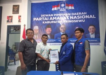 PANTAU LAMPUNG - Mantan Kepala Dinas Pendidikan dan Kebudayaan Kabupaten Pringsewu, Tri Prawoto mengambil berkas penjaringan kepala daerah di DPD...