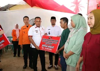 PANTAU LAMPUNG - Bupati Lampung Selatan H. Nanang Ermanto menyerahkan bantuan perbaikan rumah rusak pascabencana Hidrometeorologi puting beliung yang terjadi ...